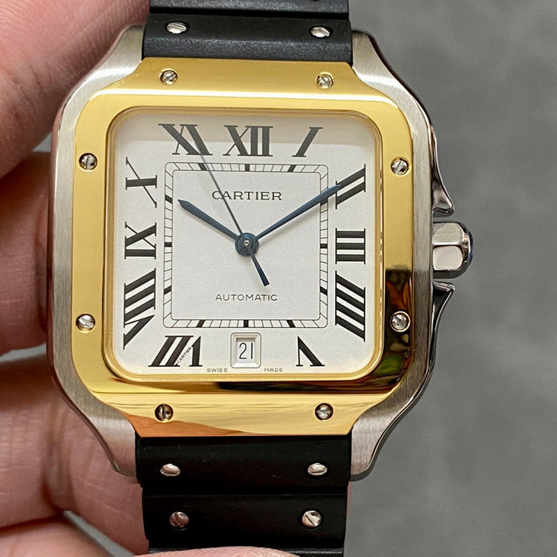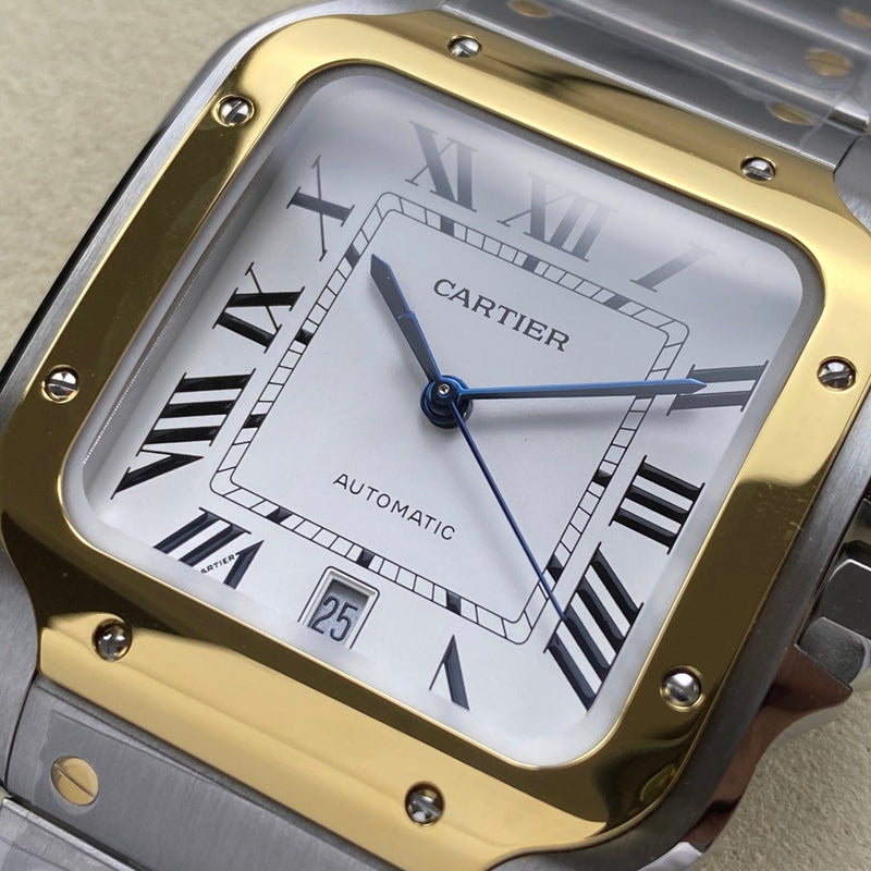 Cartier Santos Two Tone White Dial Steel Belt
